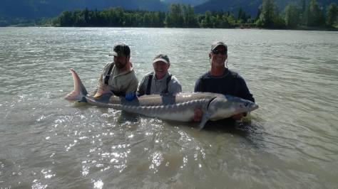 WOW, fishing has been red hot this week for sturgeon on the Fraser. Yesterday we landed 7 fish which only 1 was under 6ft all the rest were between 6 to 7.5 feet in length. Tom had a double header 7footers with both fish jumping clear out of the water at the same time, amazing to say the least.