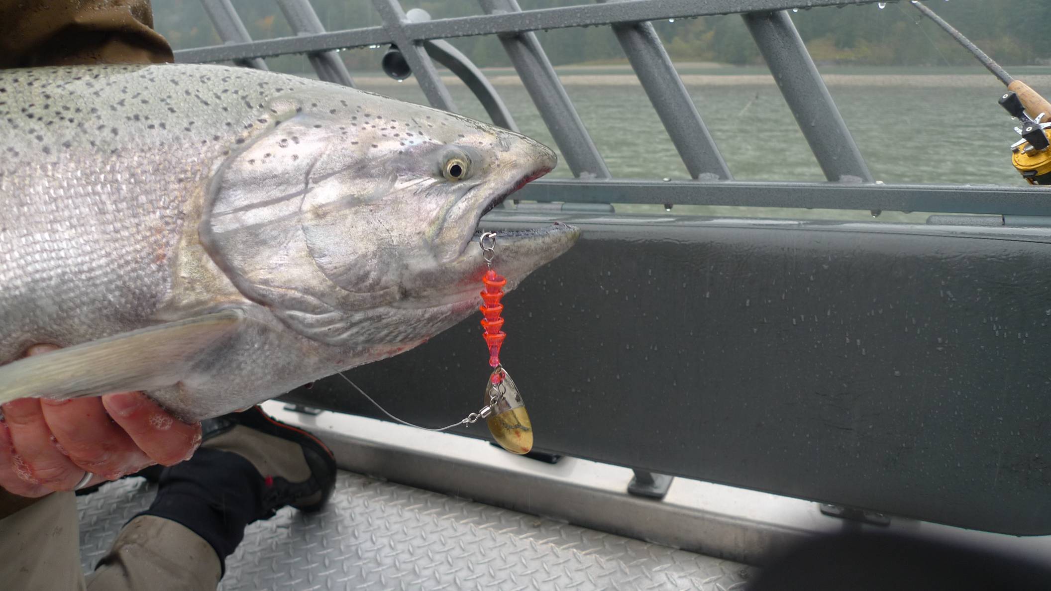 Methods- We have been using 3 primary methods, casting spoons and spinners, fly fishing and plunking T-Spoons. If your planning on casting spoons or spinners, our best lures has been the Gibbs Croc in 3/8 Hammered Brass /Red fire Stripe. The most effect has been to start at the top of the bar and walk and wade while casting across the current. Fish the Fraser the same way you would the Vedder or any small stream, taking a step with each cast.