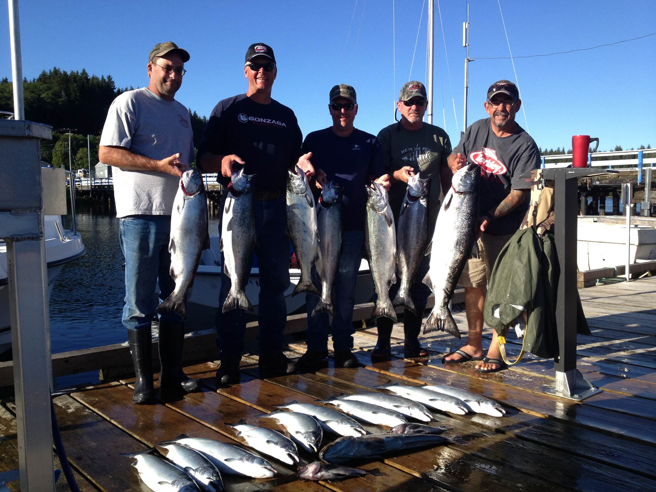 Salmon Fishing on the West Coast will continue to produce these types of results for another 4 to 6 weeks so if your looking for that trip of a lifetime, give us a shout. We are trolling spoons, anchovies and ultra violet Hoochies. Although most of the guides and anglers will only use anchovies we caught our 5 largest Chinook trolling the Silver Horde Kingfisher.