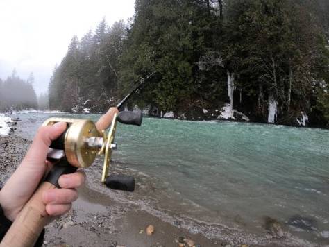 With the average visibility sitting around 16” or so on the Vedder/Chilliwack River for the month of January, there’s a mass variety of bait and tackle choices you can choose. If you have roe stashed away from Salmon season last year, it’s a good time to pull some out! Don’t be shy either, a quarter size or so doesn’t seem to be spooking these fish off, rather leaving a nice scented trail for them to find your line. Also, the classic 4 to 6” pink worm combos, beads and chartreus wool with a small piece of prawn/shrimp have all been hot ticket set up’s. Steelhead are aggressive against smaller fish that are in the rivers right now and are especially aggressive so tossing some spoons or spinners to trigger one of these fish into an explosive take, is always a good option. GibbsDelta Tackle by far make the most productive spoons for steelhead fishing, the Kit-